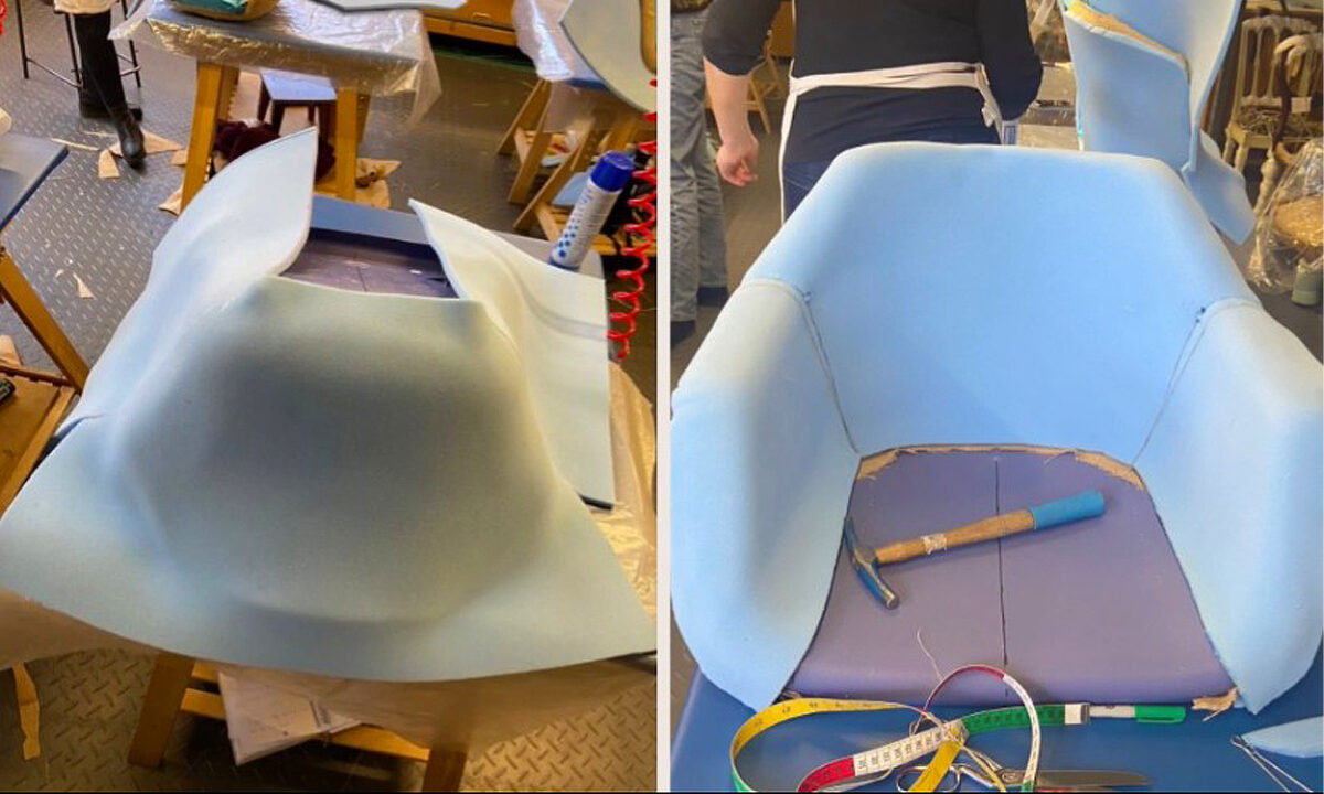 There are multiple stages involved in creating this tailored covered Robin Day armchair.
