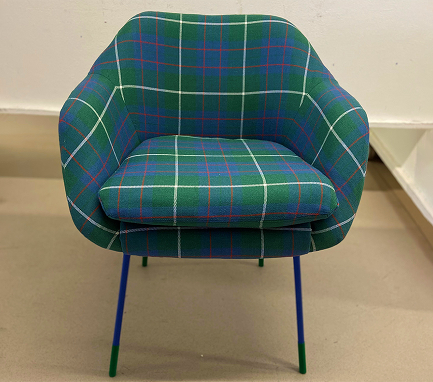 As part of her course at London Metropolitan, we donated some of our Strome fabric to Liiza to support her final year chair upholstery project. She reupholstered a Robin Day armchair and crafted a bespoke seat cushion, showcasing both her creativity and the versatility of our tartan. We are pleased to share more from Liiza about her process and experience working with our fabric. Discover how she brought new life to this armchair with our Heavyweight MacIntyre Hunting Ancient Tartan.